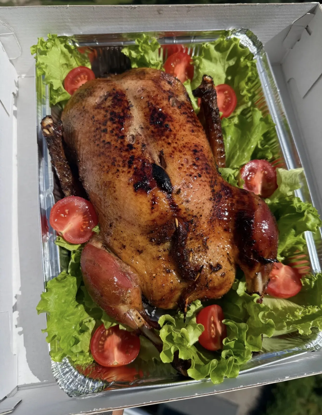 Сочная утка фаршированная . Яблоки,апельсины,специи.мед