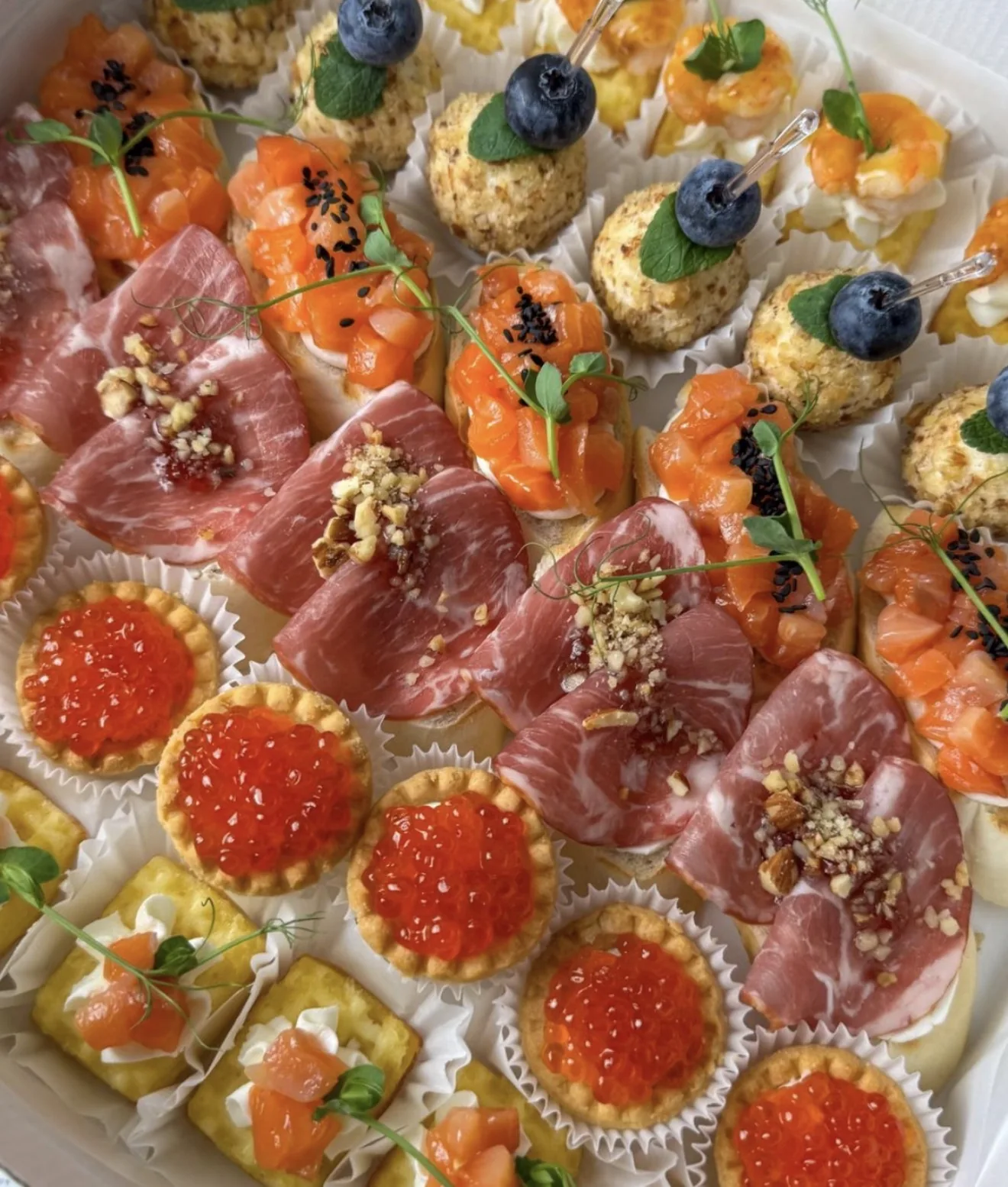 Бокс Девичник 2.0 5400₽ — Мини брускетта с форелью 5шт — мини брускетта с прошутой 5шт — сырные шарики сладкие 7шт — тарталетка с красной икрой 7шт — канапе на сырной вафле 14шт 38 позиций Бокс девичник 2.0